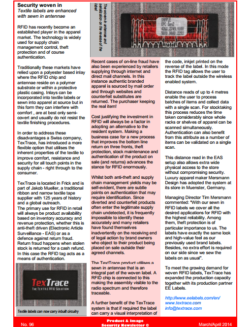 EE Labels in this months newsletter from Product & Image Security. They describe the function of RFID for security and brandprotection.